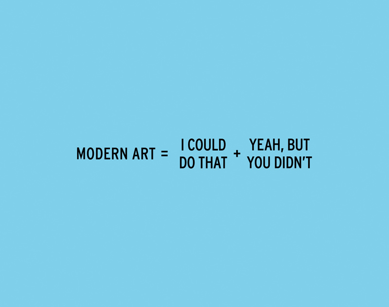 Wiskunde is nooit mijn vriend geweest. Ik ben meer van de talen. Maar kunstenaar Craig Damrauer’s wiskundige vergelijkingen  (www.morenewmath.com) zijn mij volkomen duidelijk. Met name zijn simpele formule over moderne kunst is spot on: